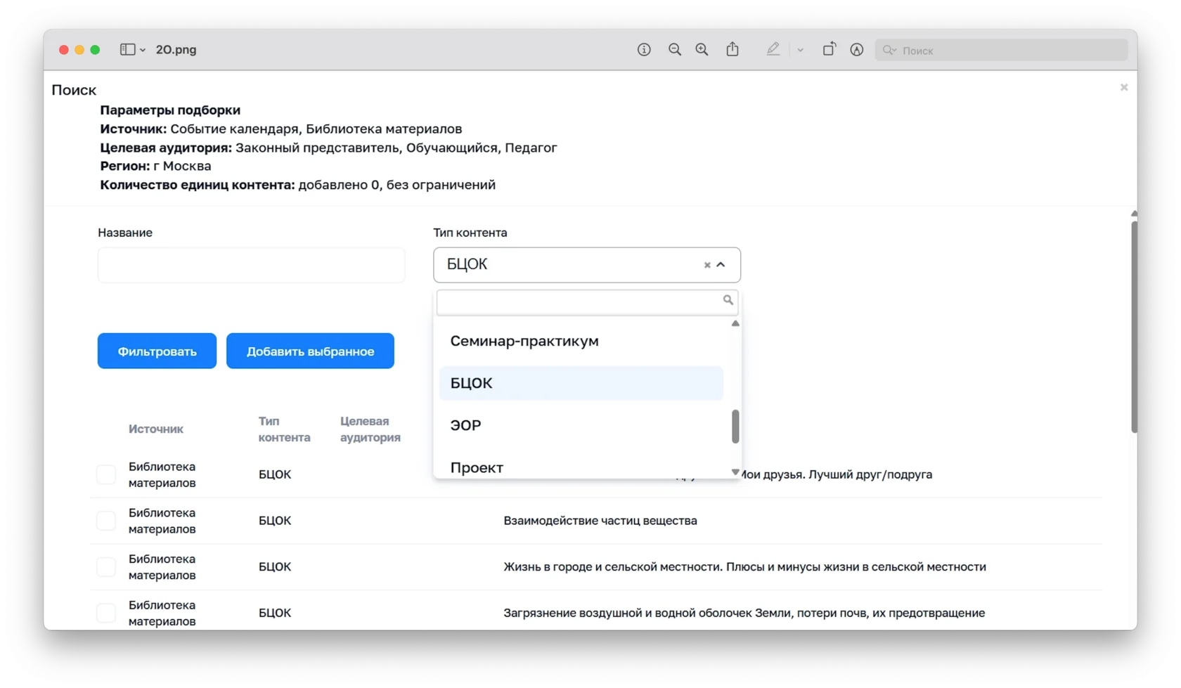 Также администратор или методист может вручную создать подборку – выбрав подходящие материалы из разных разделов системы.